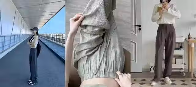 通勤優雅風:棉麻西裝褲、垂順闊腿褲、雪紡褲、西裝拖地褲等;
