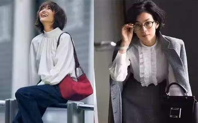 例如簡潔大氣的襯衫單品,雖說沒有花俏感,穿上身卻顯得十分有腔調,非常符合自身的氣質。右圖中博主的這組灰色外套搭配白色襯衫,沉穩內斂。襯衫前胸處的木耳邊設計,可以很好的中和掉外套帶來的沉悶感,增添減齡優雅之感。下身搭配一條深灰色高腰直筒裙,女人味十足。