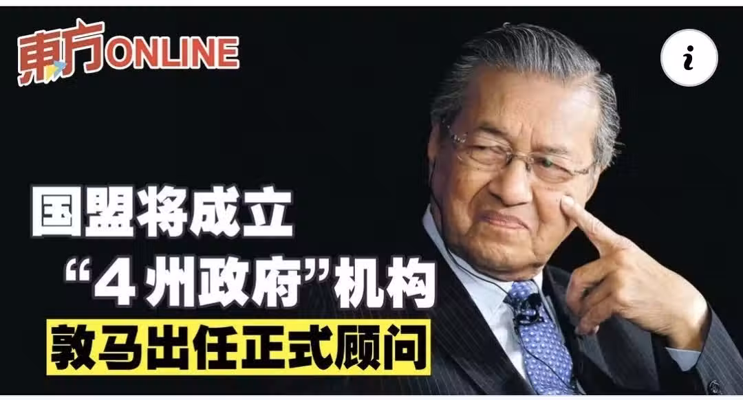 (瓜拉登嘉樓14日訊) 國盟的4州政府將聯手成立一個機構──「4州政府」(State-Government4,簡稱SG4 ),由前首相敦馬哈迪擔任非正式顧問。
