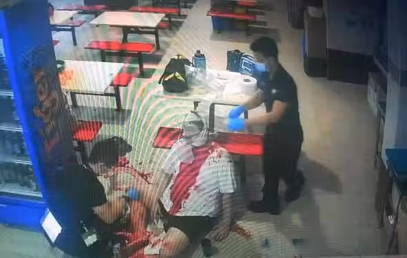 (新加坡15日訊)宏茂橋咖啡店恐怖血案!兩男遭6兇徒持巴冷刀砍傷,頭頸中刀變血人。