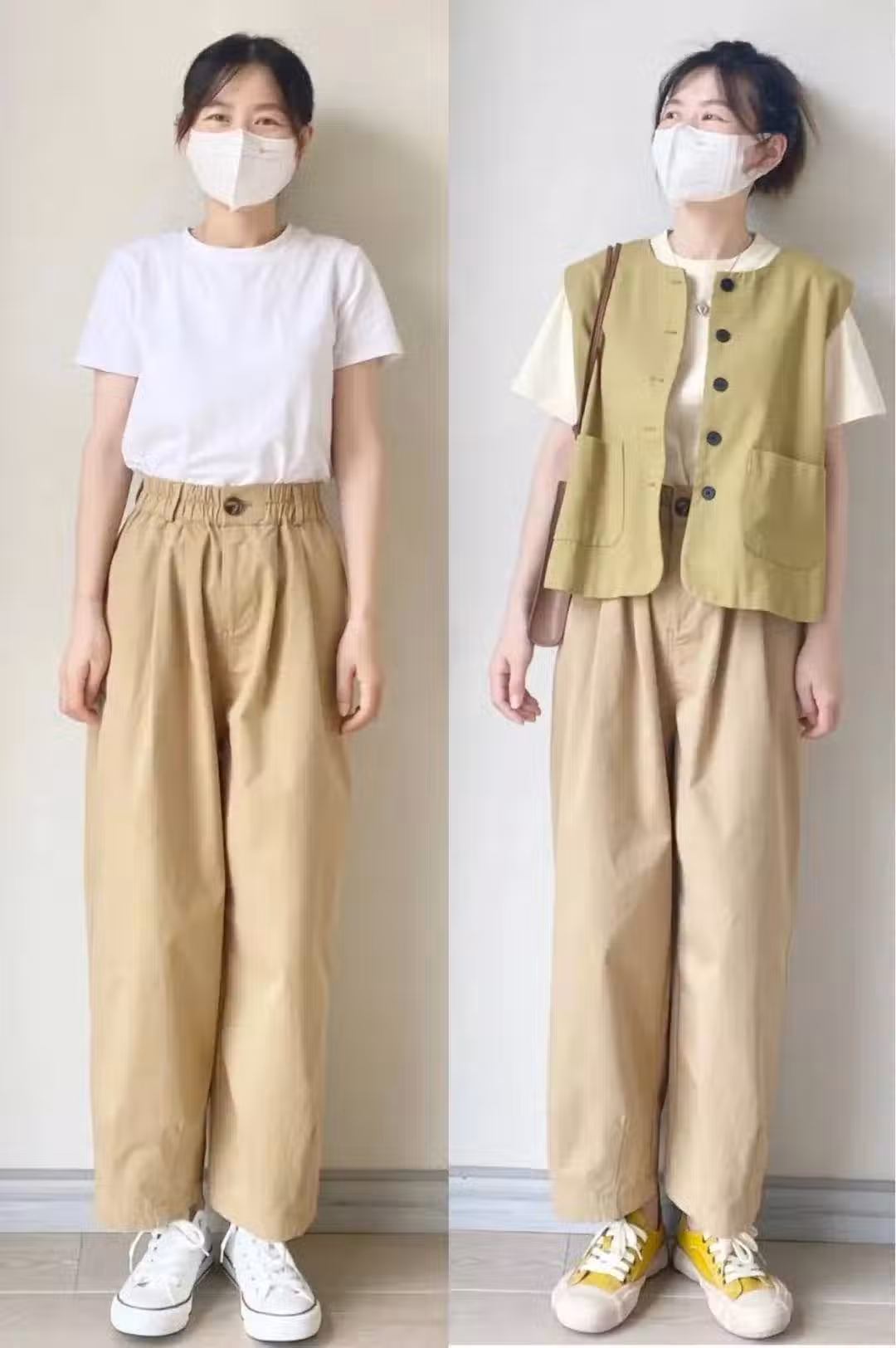 如果你一直看我們的改造欄目,就知道疊穿的魅力,我們加一件芥末綠馬甲之後立馬提高了穿搭層次感,從量感到色彩都更豐富了。