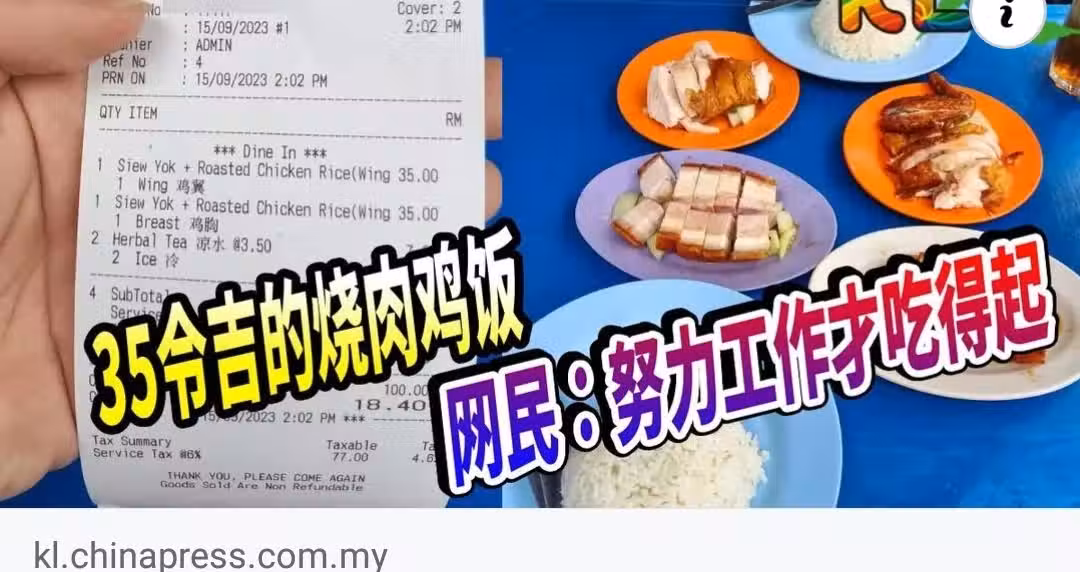 35令吉的燒肉雞飯 網民:努力工作才吃得起
