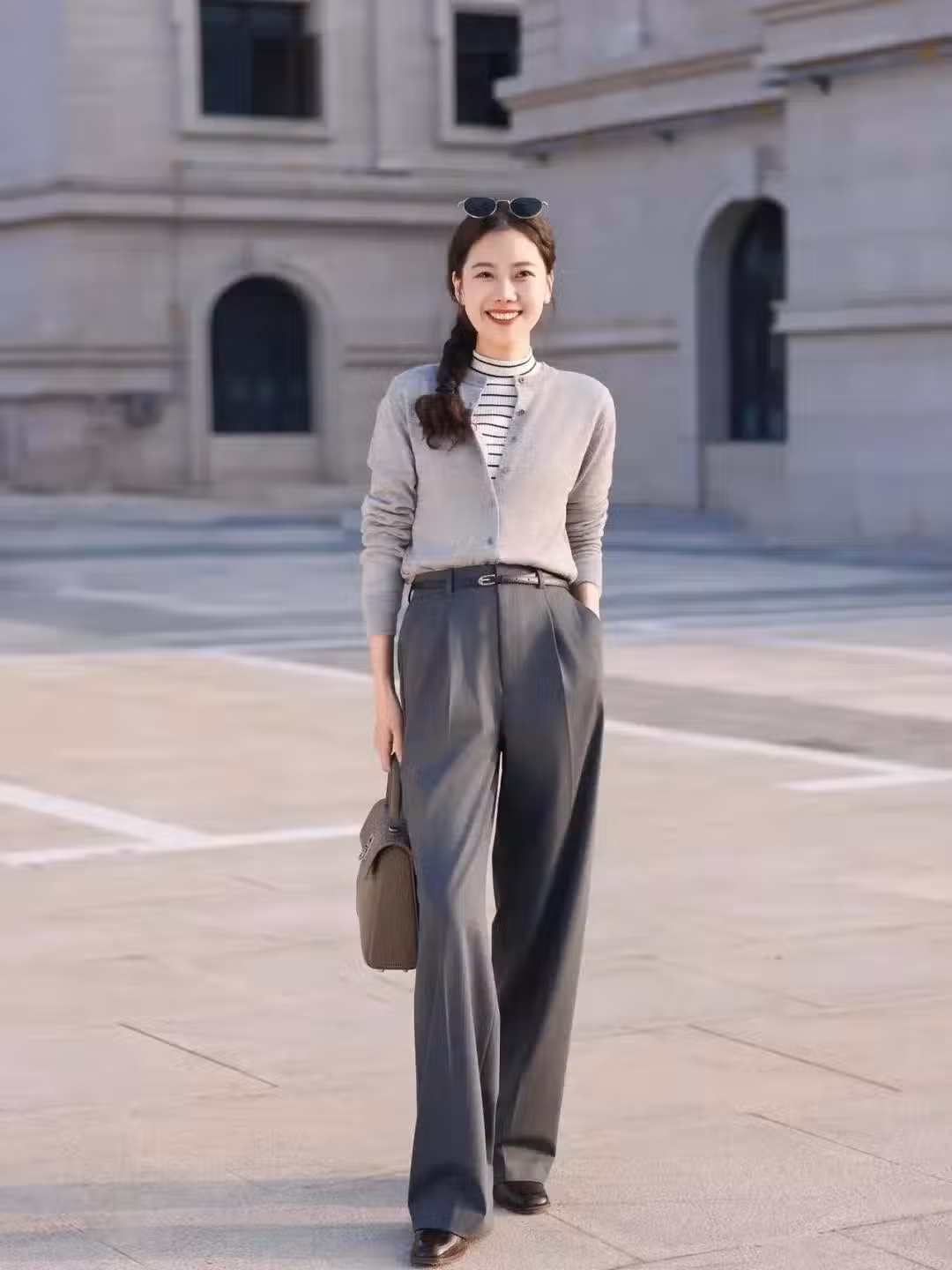 針織衫+闊腿褲,今年秋天最流行的搭配