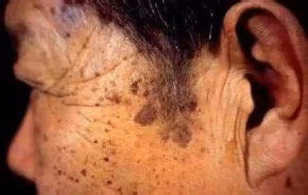 「老年斑」好發於面部及手背,亦見於軀幹、四肢等其他部位。初起皮損為1個或數個淡黃或淺褐色的扁平丘疹,圓形、卵圓形或不規則形,境界清楚,表面呈顆粒狀,以後緩慢增大、變厚,數目增多,顏色變深,呈褐色甚至黑色斑塊。