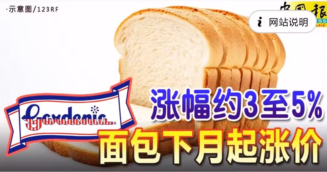 (吉隆坡25日訊/獨家報導)Gardenia麵包將於10月1日起,調漲旗下30種麵包與食品的價格,漲幅約3至5%。