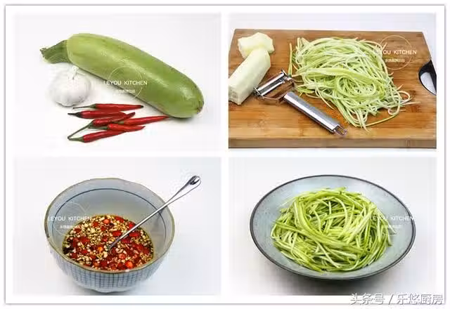 第四步:把西葫蘆絲放入碗中,吃的時候淋上料汁即可。
