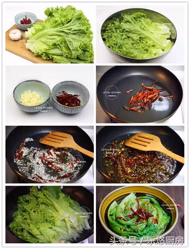 第七步:鍋中倒入適量的水燒開,把生菜放入鍋焯30秒,然後將生菜瀝干水分放到碗里。(在焯生菜的時候,可以往鍋里放幾滴食用油,這樣焯出來的生菜顏色鮮亮,非常好看。)