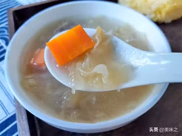 干銀耳半朵、排骨300克、胡蘿蔔1根、姜幾片、鹽1小勺。
