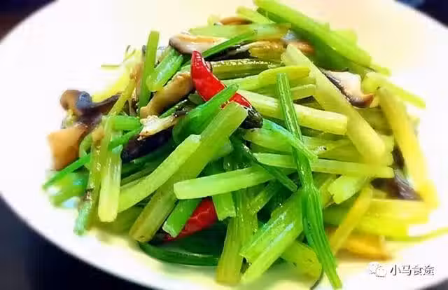 1.將鮮芹菜摘去葉和根洗凈,直刀切成5厘米長的段,放進開水鍋中焯熟撈出。