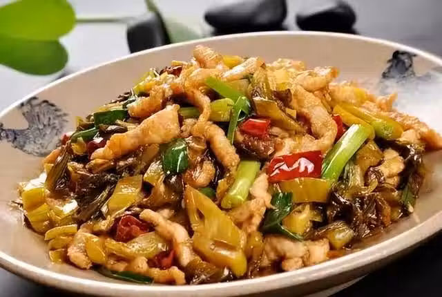 炒鍋燒油,下入干辣椒,蔥薑絲炒香,下入肉絲炒變色,直接下入酸菜絲炒勻炒透,調入基本味,鹽、雞精、味精、醬油,料酒,加入少許清水,翻炒入味,淋點水澱粉勾芡,來點花椒油,即可出鍋,這樣做出來的肉絲炒酸菜,酸菜鹹淡正好,肉絲也剛好入味,吃著也會幹不會柴,下飯指數你給多少呢?