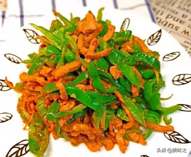 去籽尖椒100g、豬裡脊肉130g、料酒10g、蛋清10g、生薑粉適量、白鬍椒粉適量、老抽6g、糖1g、玉米澱粉1小勺、食用油1小勺、蒜1粒、姜1片、鹽適量。