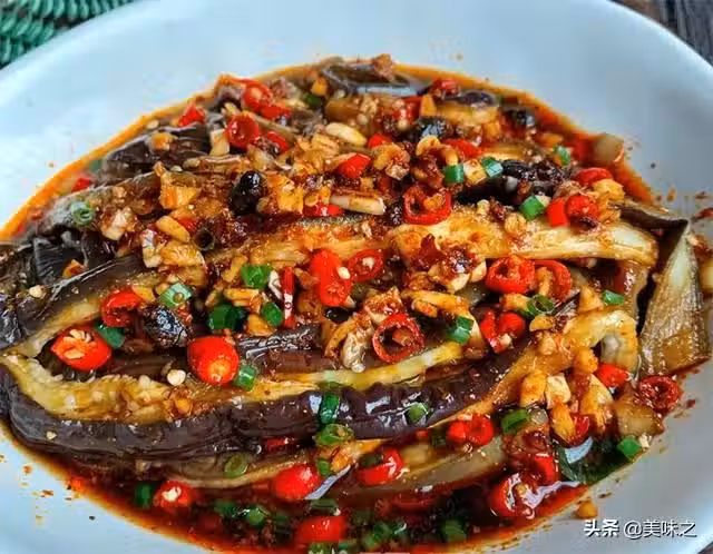 茄子4-5根(細的)、大蒜3瓣、蔥花適量、小米椒適量、油少許、辣椒粉1勺、花椒油幾滴、老乾媽辣醬1勺、生抽2-3勺、醋3勺、糖少許。