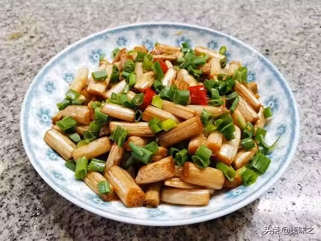藕帶一把、指天椒一個、香蔥一棵、姜一塊、蒜瓣兩個、花生油適量、鹽適量、雞粉適量、生抽適量、香醋適量。