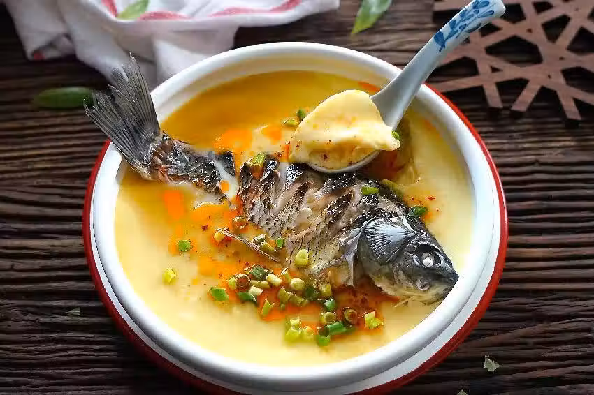 【食材】雞蛋3個、鯽魚1條、蔥1棵、鹽1茶匙、生抽少許,水適量