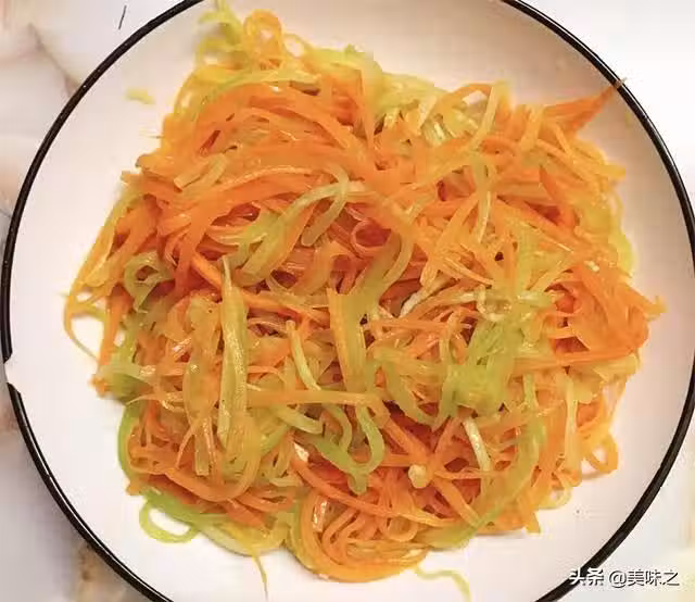 3、再加入少許鹽、蚝油翻炒紅蘿蔔絲跟萵筍絲變軟即可出鍋。