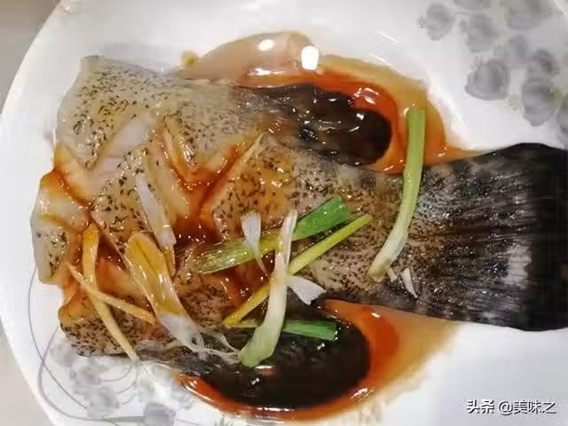 2、把生薑切絲四五條就可以,鋪在魚表面 ,蔥白切絲也鋪上去。淋上耗油。可以包保鮮膜也可以不用。