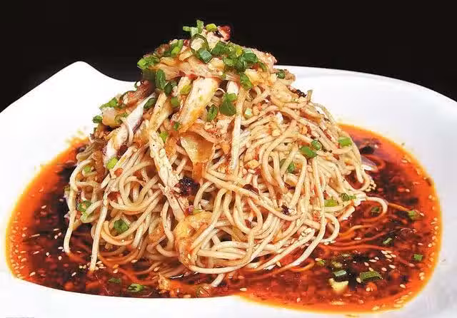 芝麻醬汁:香油2大匙、花椒1小匙、幹紅辣椒1根、芝麻醬3大匙、糖1小匙、醋1小匙、