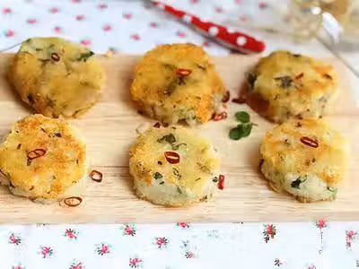 4.做成薄薄的小圓餅,涼一會(這樣煎的時候不容易散)