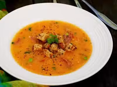 土豆、西紅柿 、洋蔥、牛奶、肘子湯、麵包、肘子肉、油、 鹽、 黑胡椒、 青蒜苗