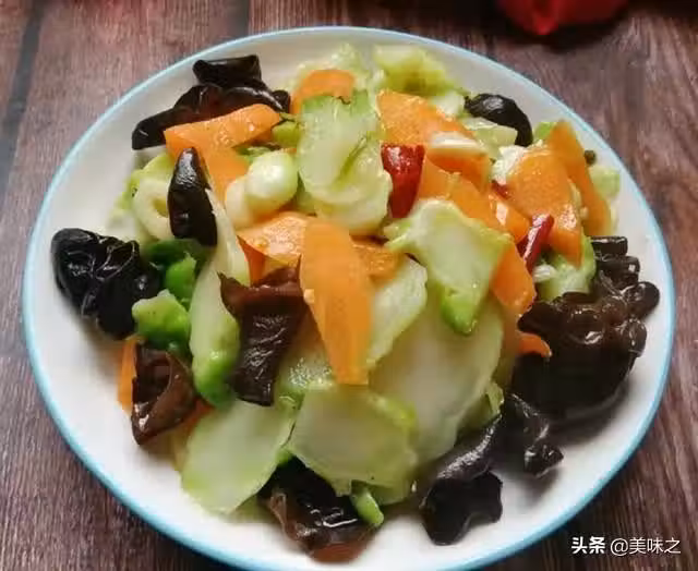 兒菜適量、胡蘿蔔適量、黑木耳適量、玉米油適量、蒜片適量、干紅辣椒適量、麻椒適量、鹽適量、雞精適量。