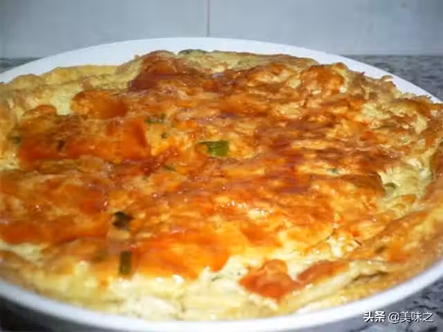 3、把所有材料都放進去以後就開始煎了,小火少油,慢慢煎。