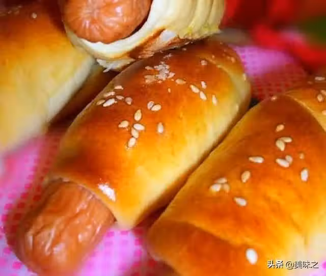 麵包粉100g、水80g、香腸4個、芝士片2片、芝麻適量、酵母5g、鹽適量、糖20g、牛油20g。