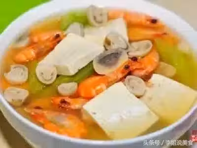 食材:對蝦、老豆腐、西芹、草菇、口蘑、姜、料酒、鹽