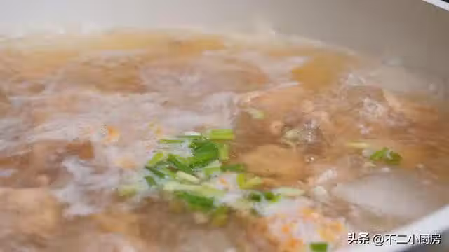 8、接著加入少許的食用鹽,把蝦米也加進來,再加入少許的小蔥段,用鏟子給它推動一下,讓蝦米受熱均勻,把鮮味散發出來,保持大火煮上一分鐘左右。這樣一道非常好吃的冬瓜滑肉湯就做好了,接著舀一勺放入到碗中,再加入這些湯汁來,味道真的是太鮮美了,還沒有喝到嘴中就已經聞到香味了,再撒入少許的蔥花,再來上幾粒的香油就可以美美的開吃了。