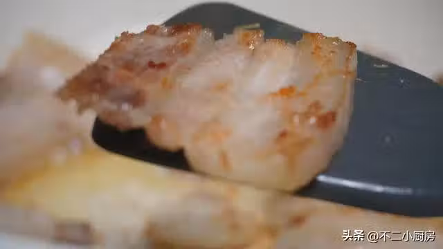 5、煸炒到五花肉表面有微微的膠皮狀,像這個樣子就可以了。我們可以看到煸炒了很多油脂出來,把這個油脂倒出來,用來炒菜非常的香。