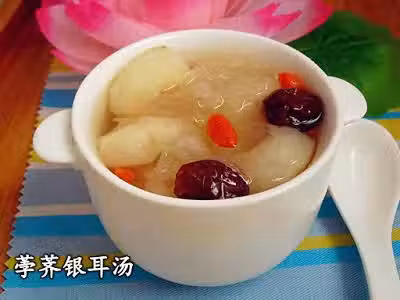 材料:荸薺 200克,銀耳 1朵,紅棗 適量,枸杞 適量,冰糖 適量