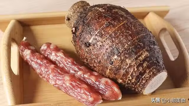 1、首先準備芋頭,我用的是香芋,也可以用小芋頭,去皮之後凈重約500g,切成小丁。臘腸也切成丁,放一起備用,沒有臘腸的也可以用五花肉丁代替。芋頭7元錢,兩根臘腸10元錢,輔料比主料都貴了,不過放了臘腸真的會香很多~~