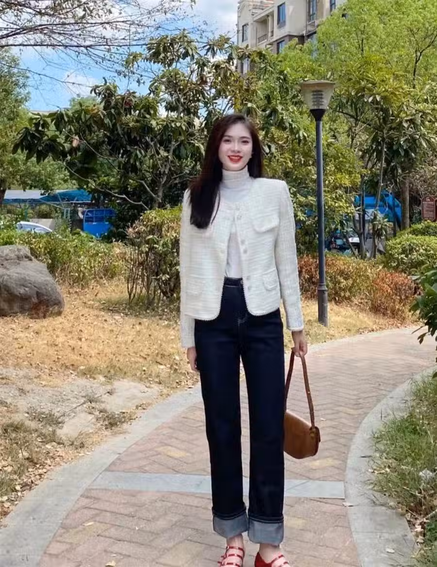 上短下長的身形比例在直筒褲的搭配上也一定要凸顯出來,選擇搭配短款的上半身單品,結合起來高腰、長款的直筒褲單品,縮短上身的視覺間距比例,營造修飾身材比例的標準化哦,五五分身材趕快跟著穿起來!