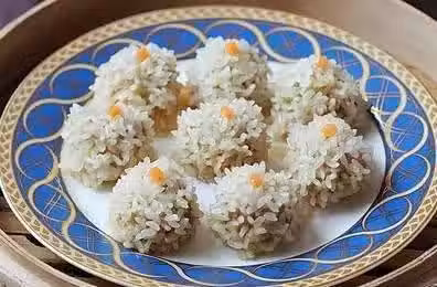 5、珍珠圓子下鍋隔水蒸,水開後繼續大火蒸10分鐘左右即可。