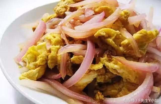 雞蛋;紫皮洋蔥;料酒1/2茶匙(3ml);清水1湯匙(15ml);鹽1/2茶匙(約3克);