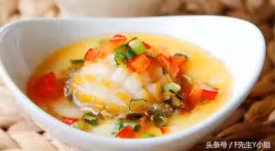 4、蒸好的蛋羹上面淋上蒸魚豉油和芝麻油,再撒上一些小蔥和紅椒,就可以吃了。