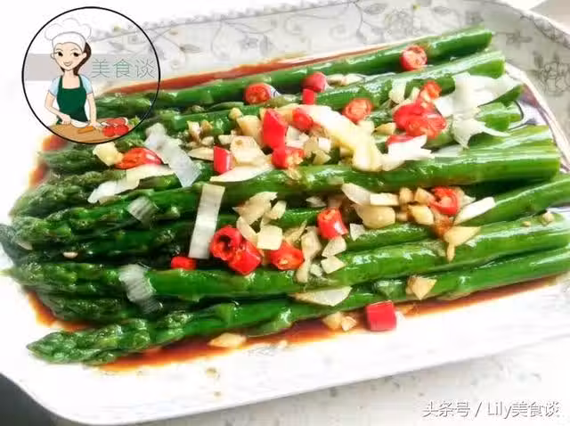 3、油鍋燒熱至冒煙,將熱油淋在蘆筍上,這道菜就做好啦。