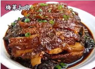 材料:帶皮五花肉 1000克,梅幹菜 200克,醬油 20克,清油 1000克