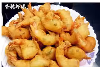 3. 將醃好的蝦沾上粟米粉,再沾上脆漿,放入熱油中,以中火炸至金黃色,瀝幹油即可。