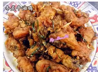 2. 鍋裏熱油,放入雞肉炸至金黃色,盛起,瀝幹油備用。
