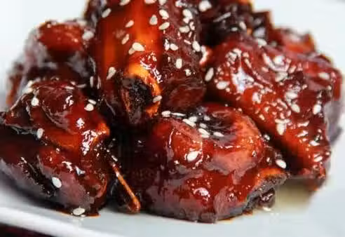 肋排500克、冰糖50克、生薑15克、陳醋40克、芝麻少許