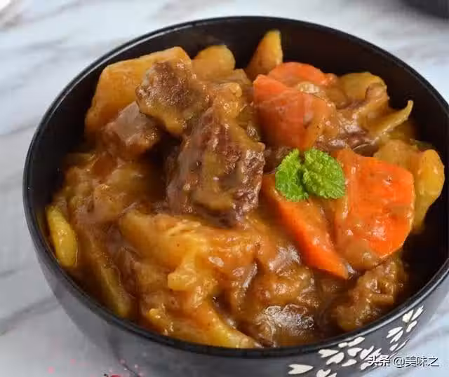 燉牛肉一碗、土豆兩個、胡蘿蔔一根、洋蔥半個、黃油15克、麵粉10克、醬油少許、鹽少許、咖喱塊一盒。