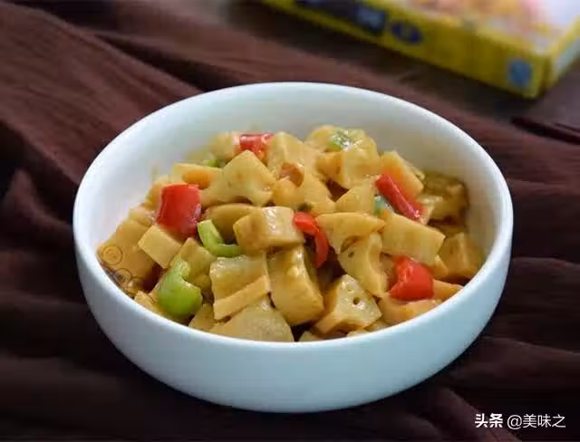 5、放入藕塊炒勻加入咖喱翻炒均勻。
