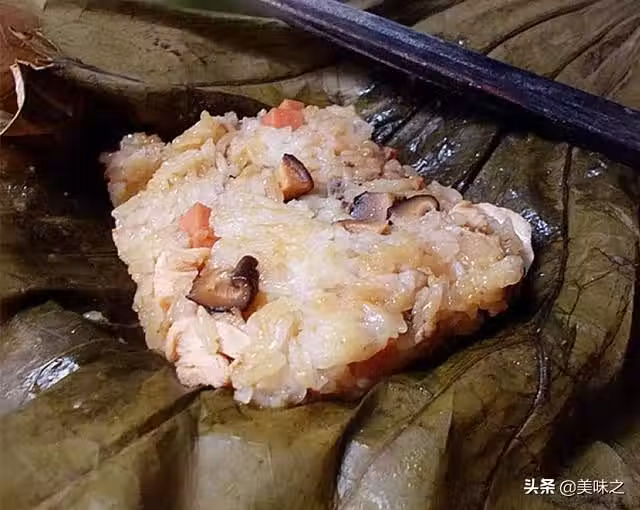 雞肉250g、糯米250g、火腿腸1根、冬菇5顆、荷葉1片、鹽適量、味精適量、五香粉適量、干辣椒5粒、姜適量、生抽1茶匙、老抽1茶匙、蚝油1茶匙、料酒1茶匙、蒜適量。
