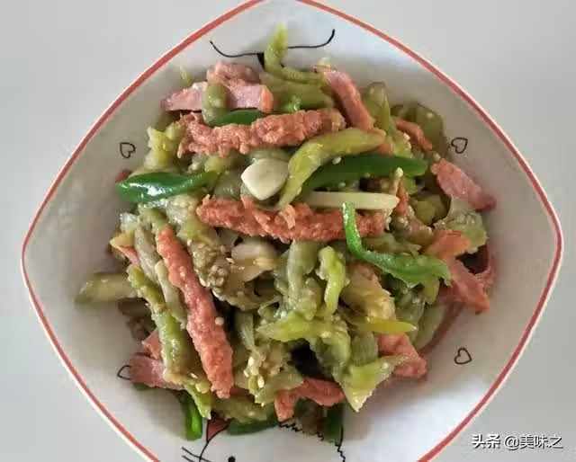7、最後加上雞肉腸,青椒,鹽和五香粉翻炒均勻就可以了。