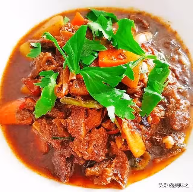 牛腩800克、胡蘿蔔一個、土豆一個、大蒜頭適量、紅辣椒幾個、香料包一個、料酒適量、西紅柿汁適量、甜麵醬一勺、豆瓣醬一勺、冰糖幾個、雞精適量、蚝油適量。