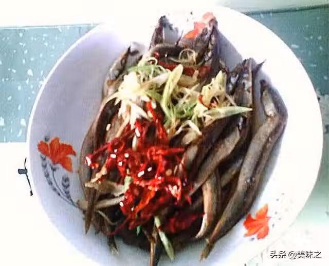 8、將油和爆香的蔥絲、辣椒絲澆在銀針魚上即可。