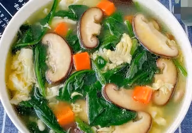 (3)下入菠菜煮軟,加入適量的食鹽和雞精調味,出鍋淋上幾滴香油拌勻即可,湯香味美好喝又飽腹,老少皆宜!