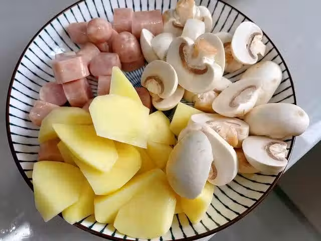 5、鍋內燒水,把切好的土豆塊放入水中,加鹽煮制一下,煮到能用筷子扎進去就可以了;