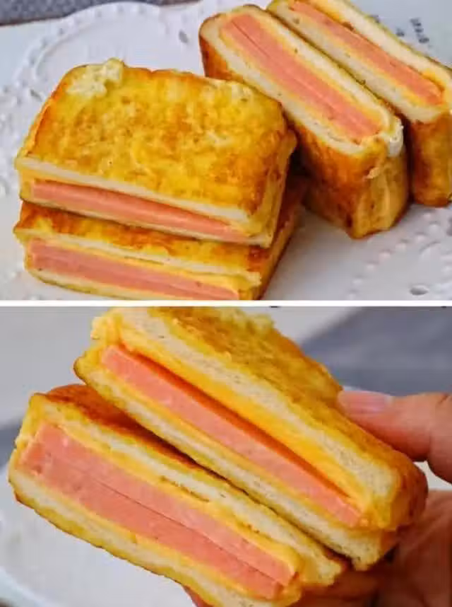 (2)雞蛋打散,將其吐司放入裹勻,鍋中刷油,將吐司放入煎至六面微黃即可