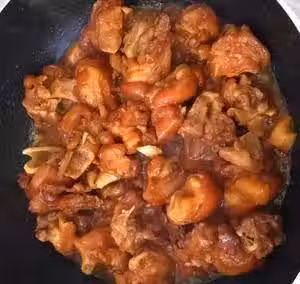 將少量冰糖放入鍋中(不加油,只需使用調味油),將中火煮沸直至糖溶解。